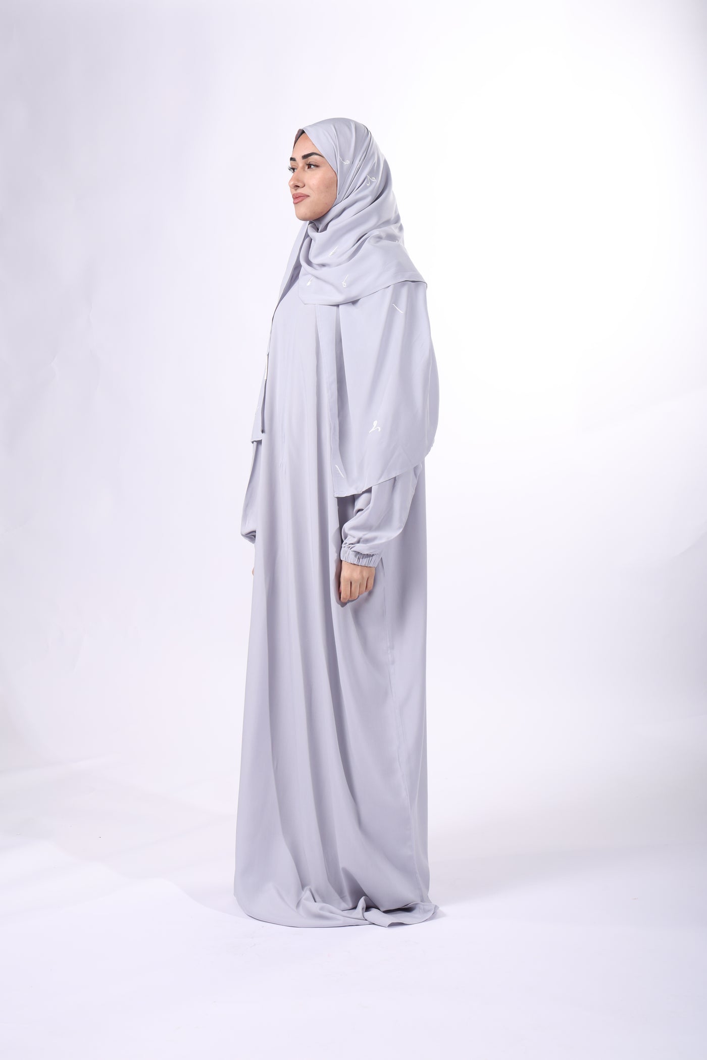 NEW/ RAMADHAN SALA / Prayer Dress with attached Embroidery sheila / Light Grey Sale